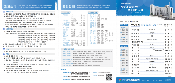 25.12.21 성탄주일, 61주년 창립기념주일 페이지 정보 작성자 한남제일 작성일25-12-20 10:59 조회136회 댓글0건 관련링크 목록 본문 댓글목록 등록된 댓글이 없습니다. 목록