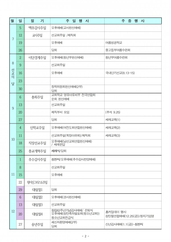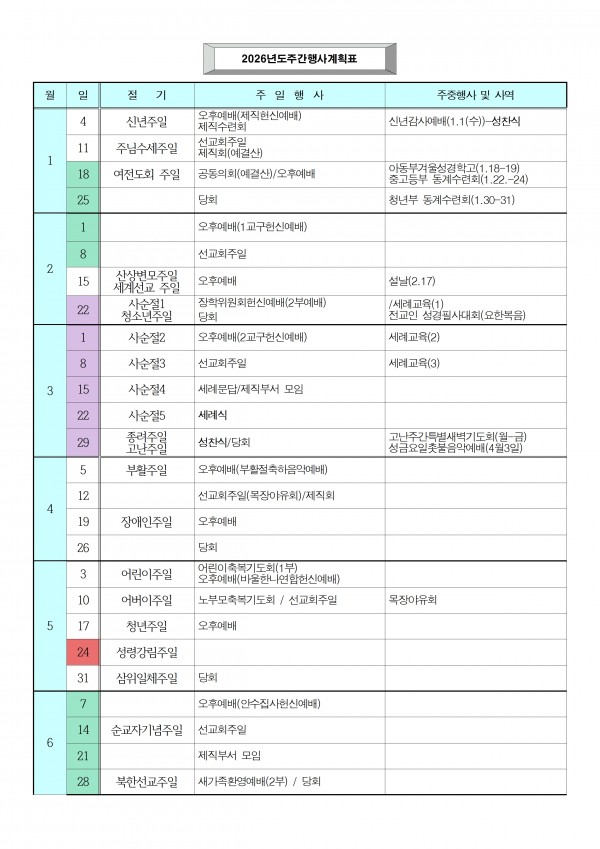 2026년도 주간계획행사표