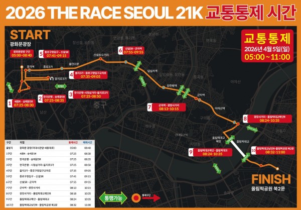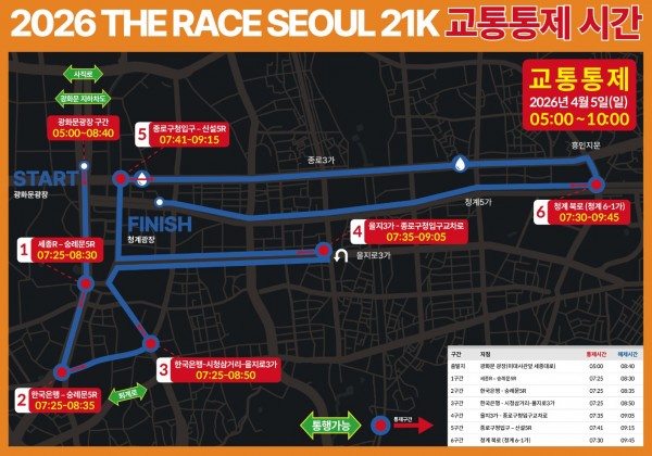 26년 4월 5일 도로통제 안내 (2026 더 레이스 서울 21k 마라톤)