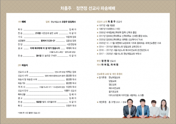 차흥주,정연정 총회선교사 파송예배 페이지 정보 작성자 한남제일 작성일21-02-19 10:16 조회2,610회 댓글0건 관련링크 이전글 다음글 목록 본문 2021년 2월 21일(주일) 오후2시 한남제일교회 댓글목록 등록된 댓글이 없습니다. 이전글 다음글 목록