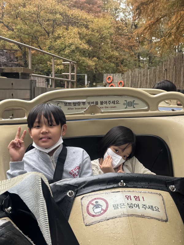 아이들은 롤러코스터, 사파리 등 다양한 놀이기구와 체험을 즐기며 하루 종일 신나게 놀았습니다.