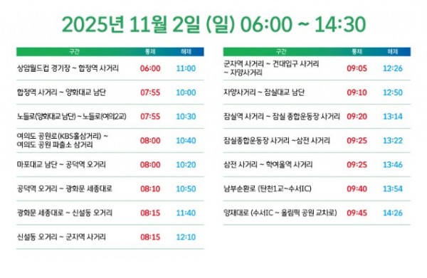 25.11.02(주일) 도로통제안내(JTBC 서울 마라톤)